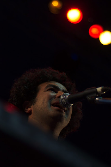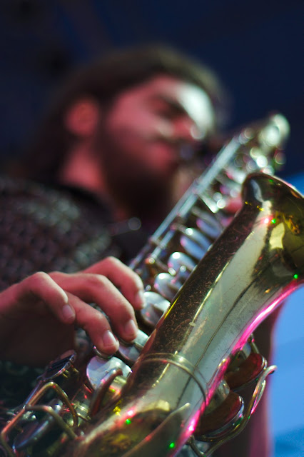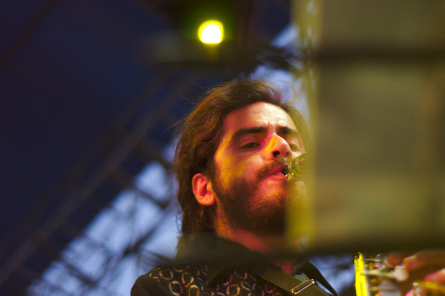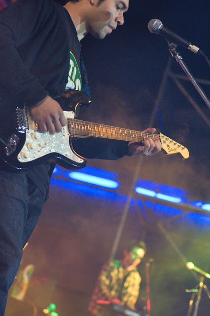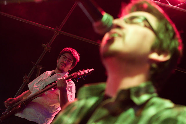 I ussually don't comment on pictures, but I think this one needs it. Believe or not, this two guys in the "front" of the picture are part of the band, what are they doing standing outside the scenario? Ohhh, right, it's a solo of Marcelo ... something like the lone ranger.